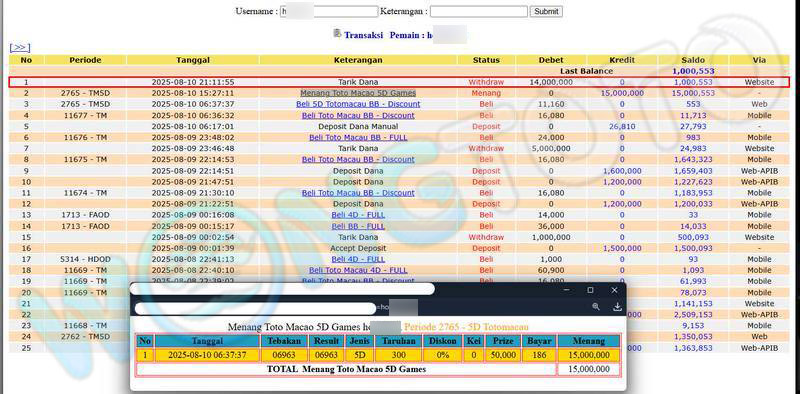 WIN & WITHDRAWAL MEMBER WONGTOTO