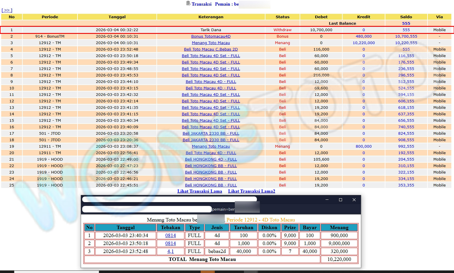 WIN & WITHDRAWAL MEMBER WONGTOTO