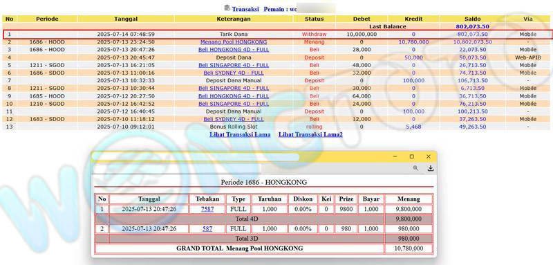 WIN & WITHDRAWAL MEMBER WONGTOTO