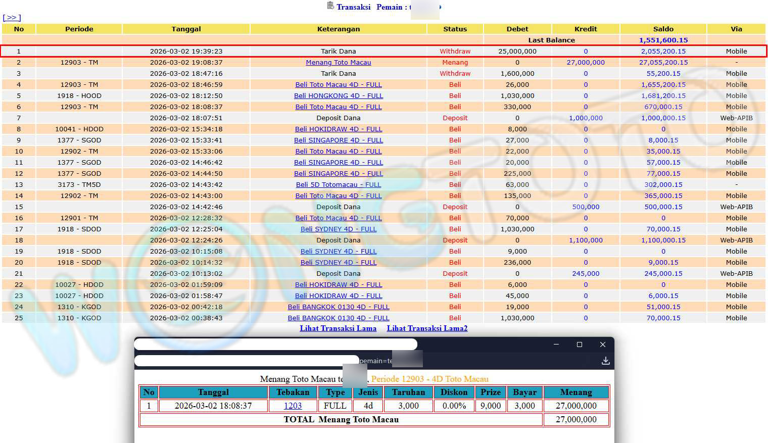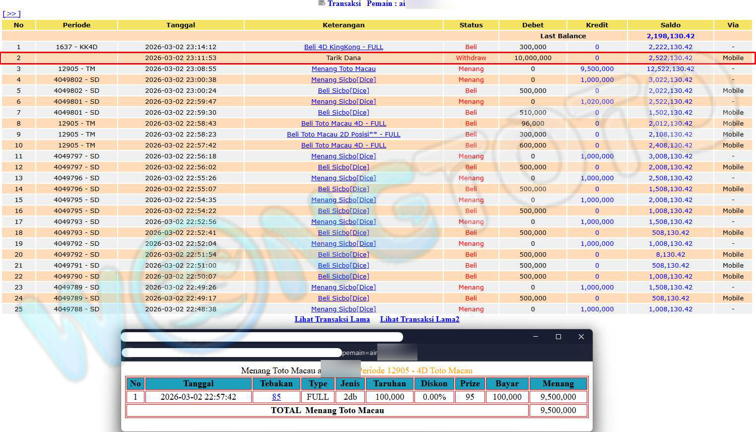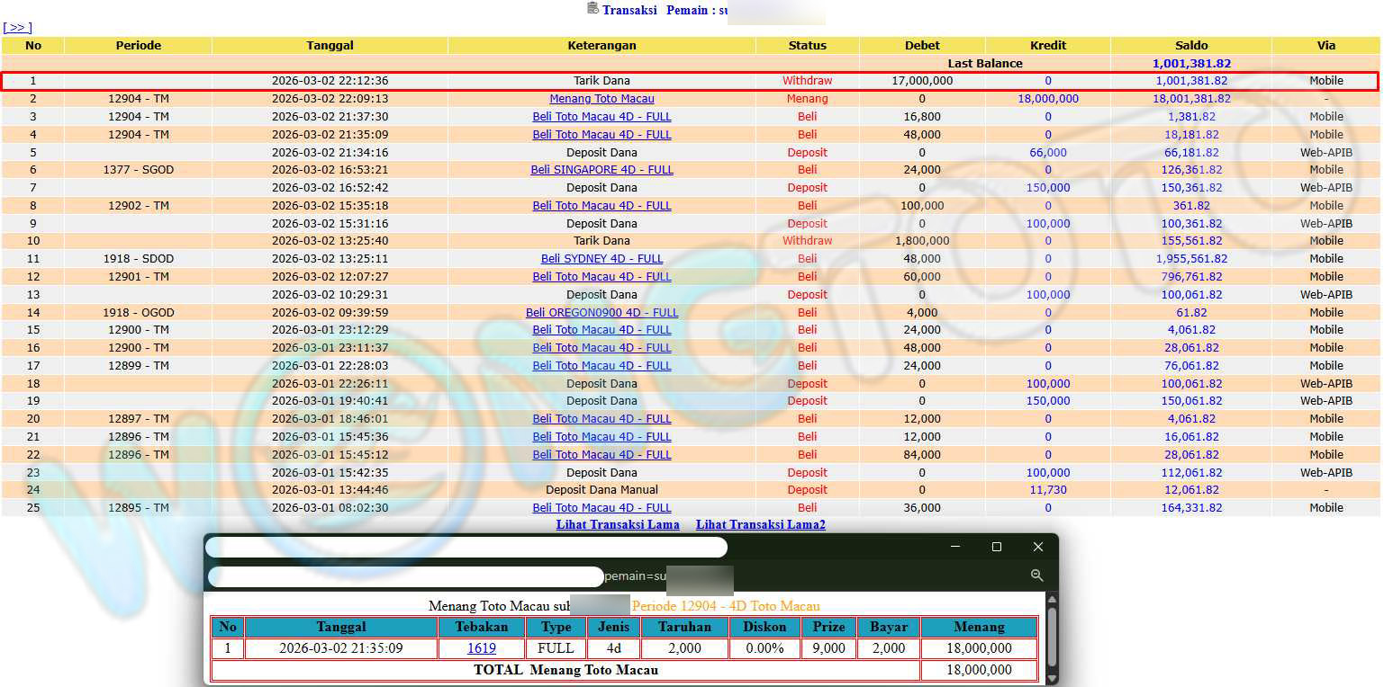 WIN & WITHDRAWAL MEMBER WONGTOTO