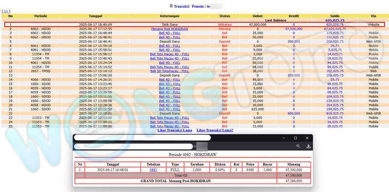 WIN & WITHDRAWAL MEMBER WONGTOTO