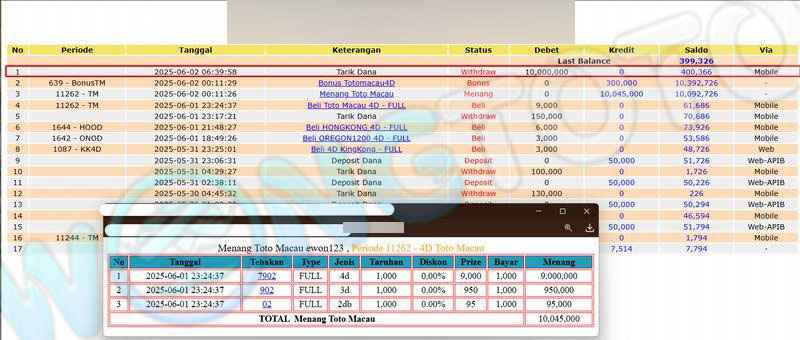 WIN & WITHDRAWAL MEMBER WONGTOTO