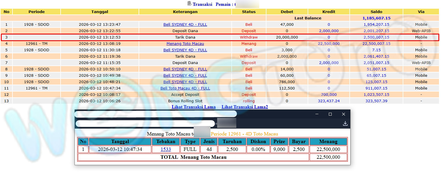 WIN & WITHDRAWAL MEMBER WONGTOTO
