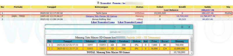 WIN & WITHDRAWAL MEMBER WONGTOTO