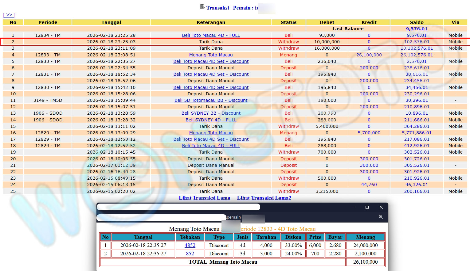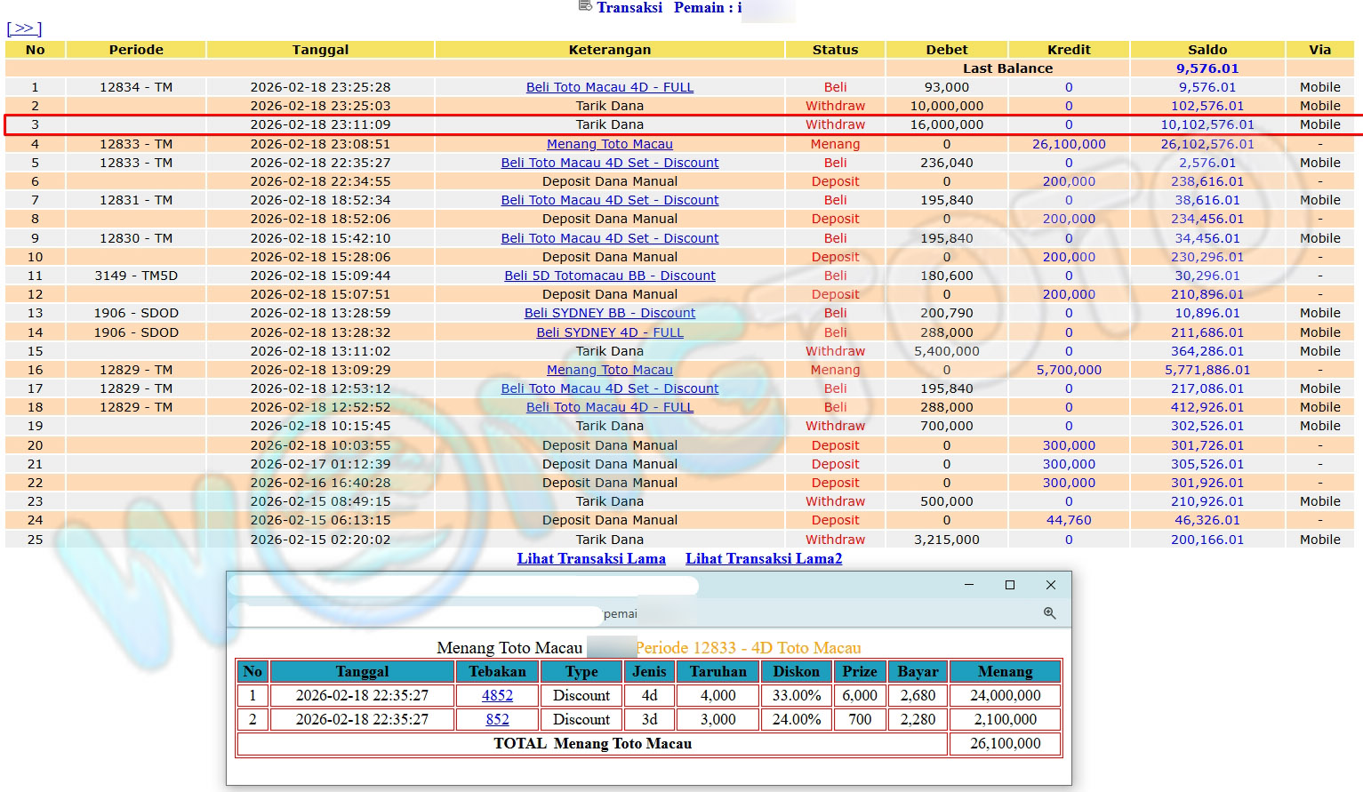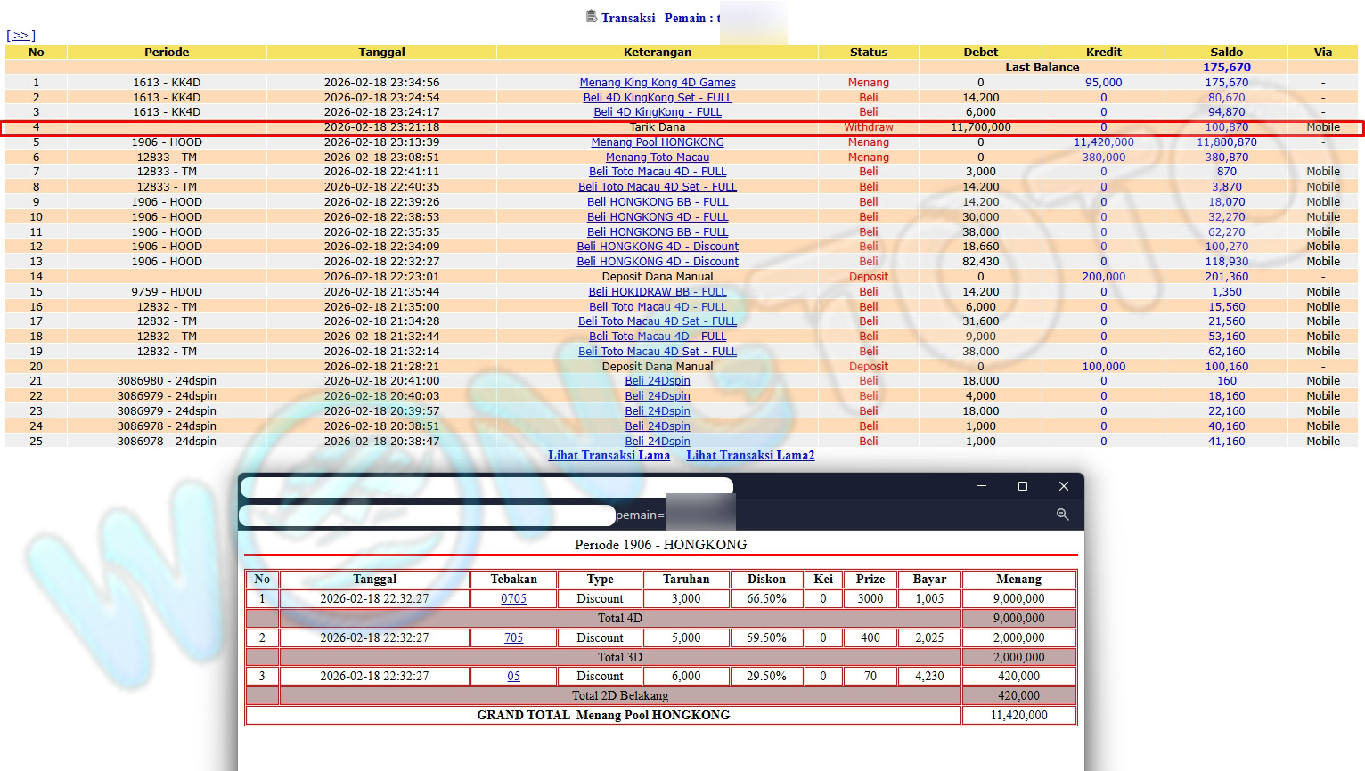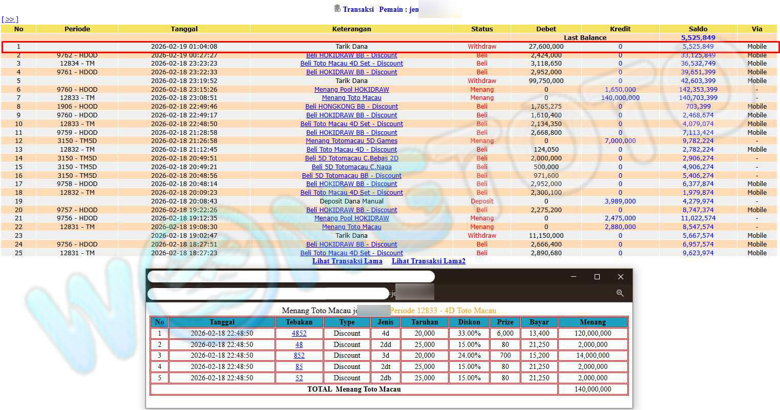 WIN & WITHDRAWAL MEMBER WONGTOTO