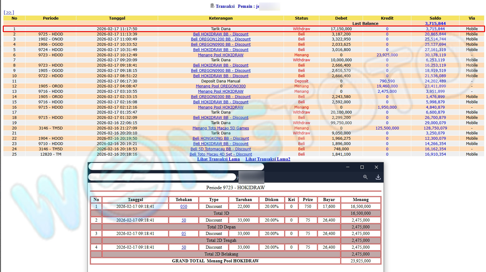 WIN & WITHDRAWAL MEMBER WONGTOTO