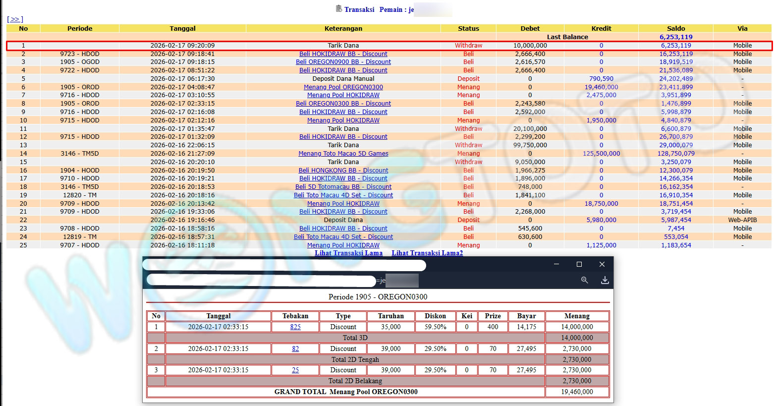 WIN & WITHDRAWAL MEMBER WONGTOTO