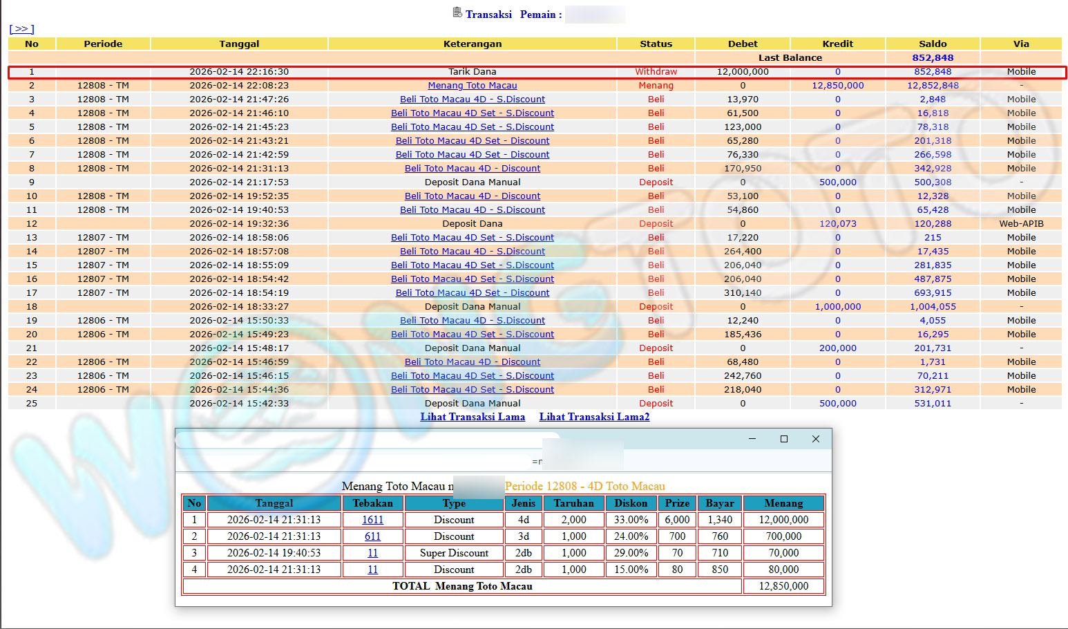 WIN & WITHDRAWAL MEMBER WONGTOTO