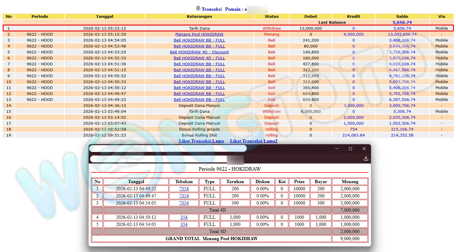 WIN & WITHDRAWAL MEMBER WONGTOTO