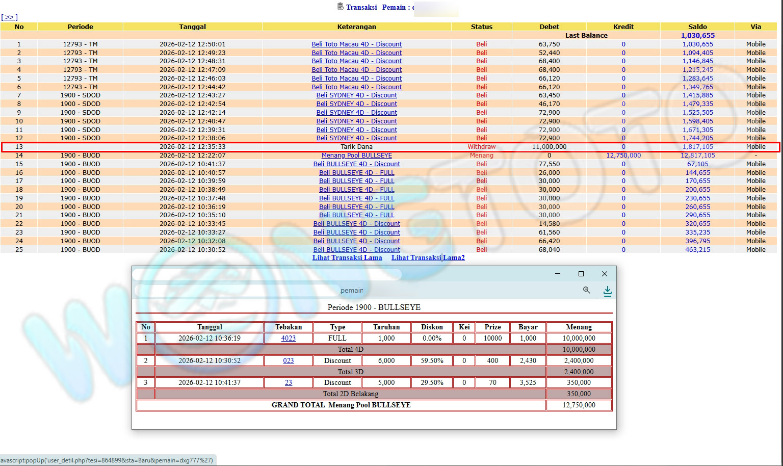 WIN & WITHDRAWAL MEMBER WONGTOTO