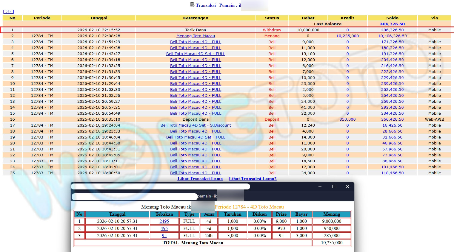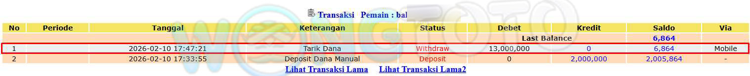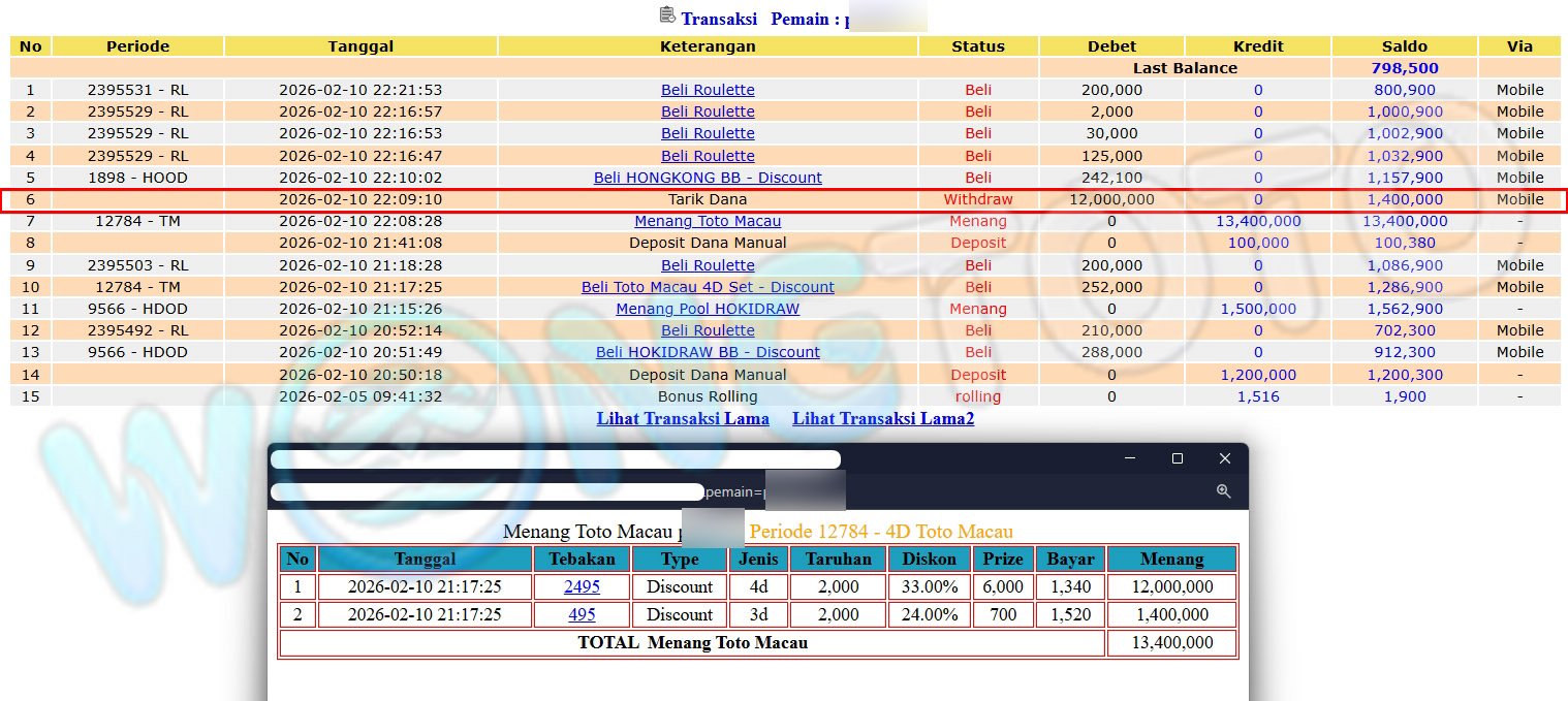 WIN & WITHDRAWAL MEMBER WONGTOTO