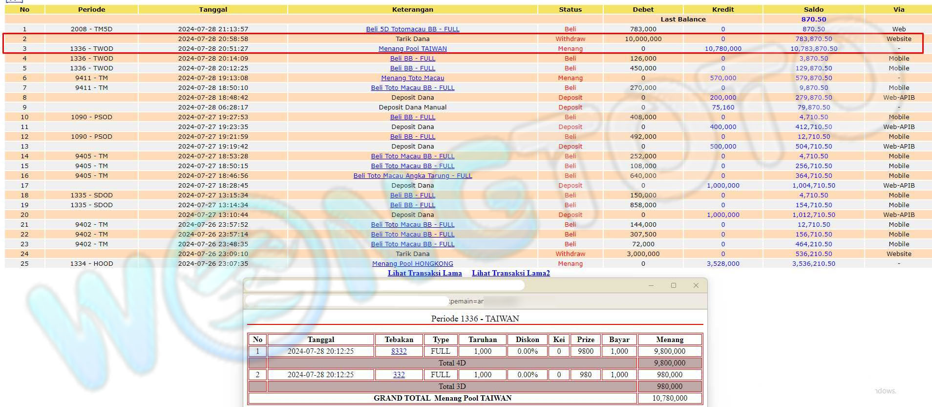 WIN & WITHDRAWAL MEMBER WONGTOTO