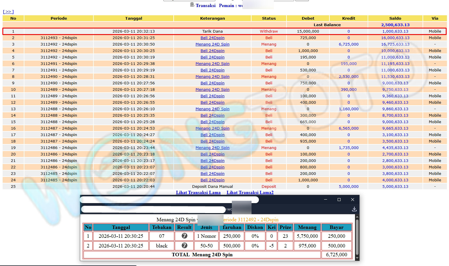 WIN & WITHDRAWAL MEMBER WONGTOTO