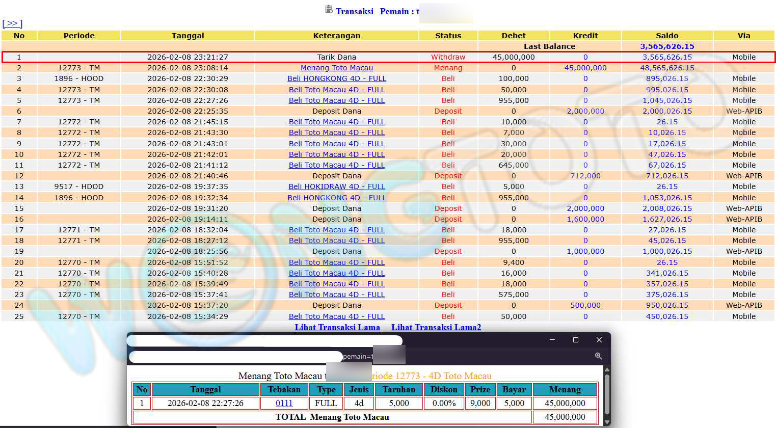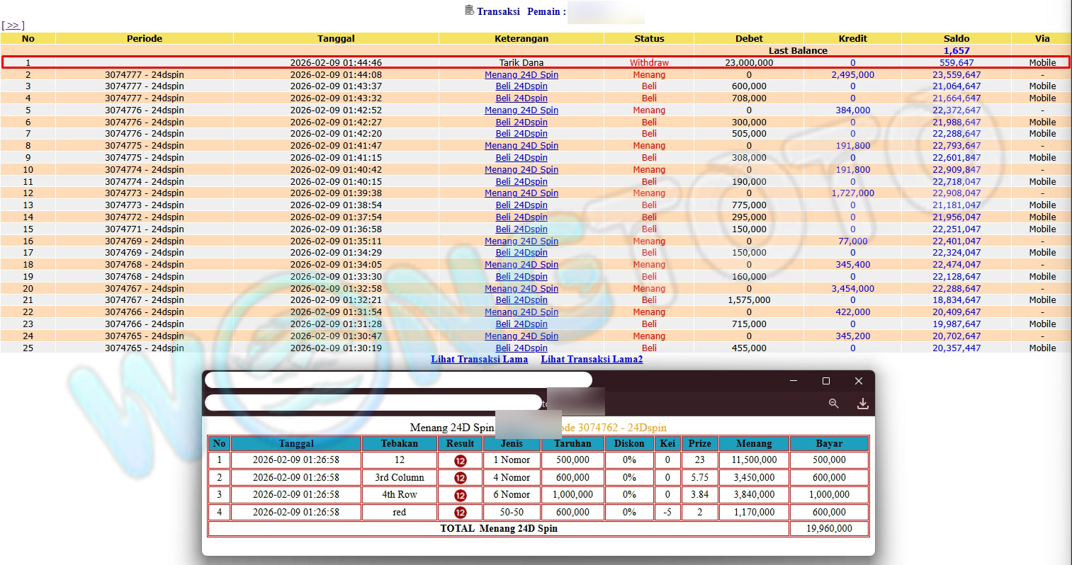 WIN & WITHDRAWAL MEMBER WONGTOTO