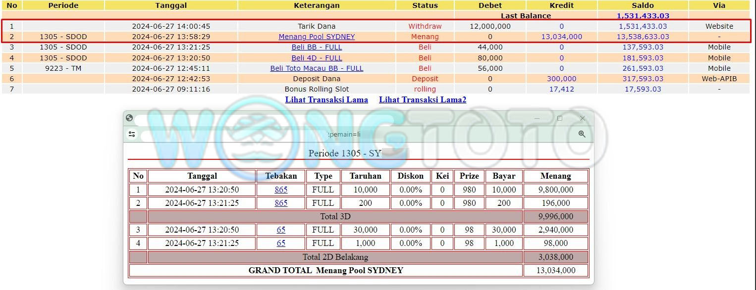 WIN & WITHDRAWAL MEMBER WONGTOTO