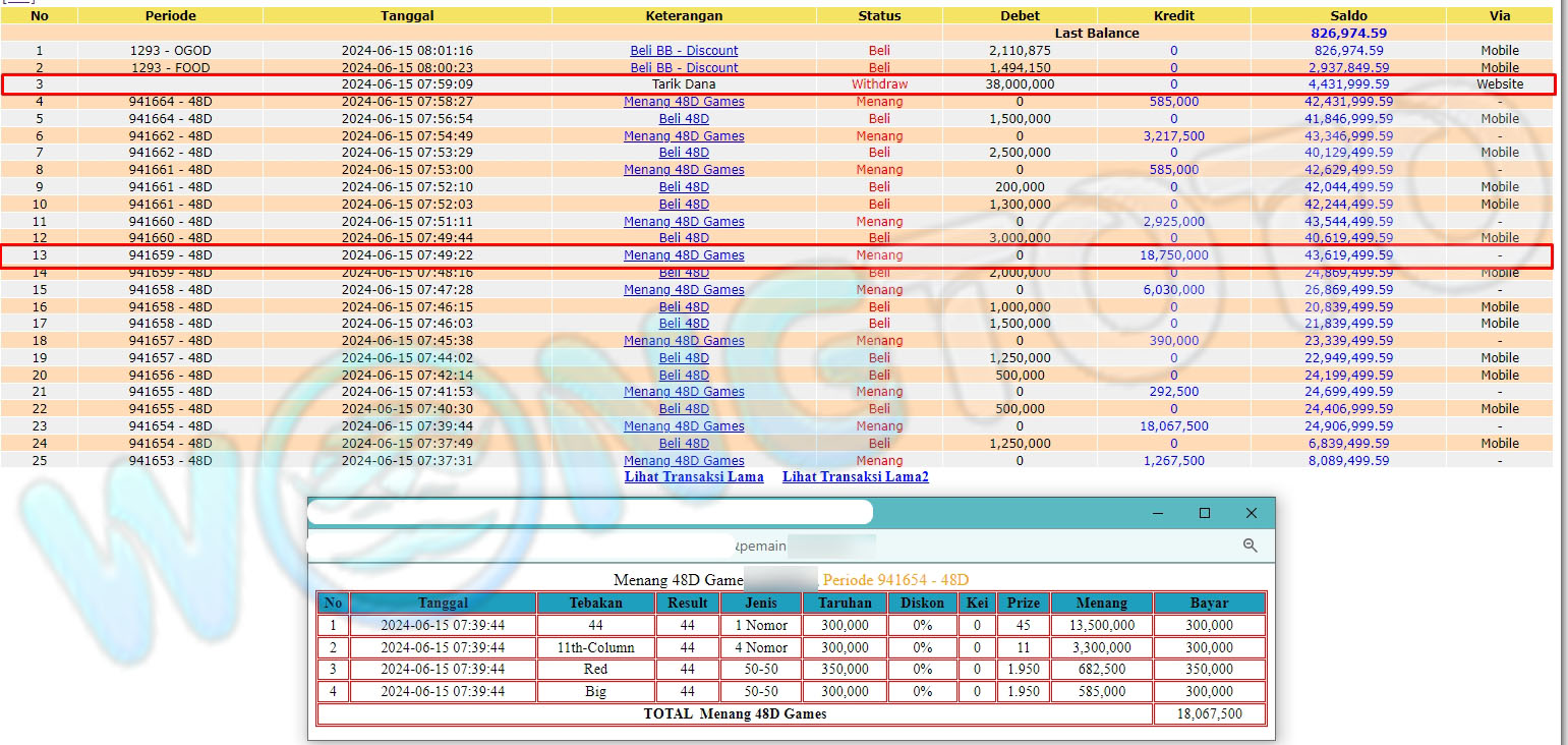 WIN & WITHDRAWAL MEMBER WONGTOTO