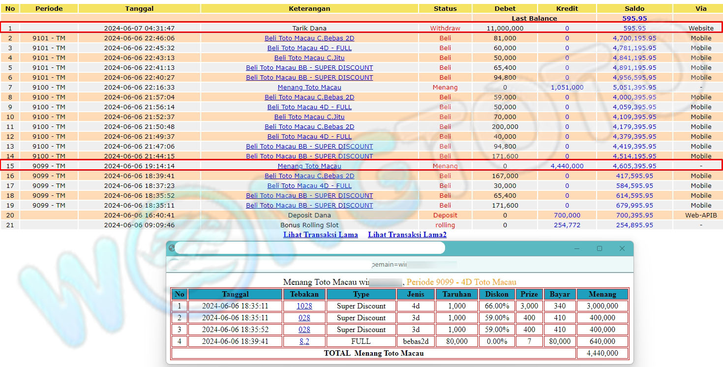 WIN & WITHDRAWAL MEMBER WONGTOTO