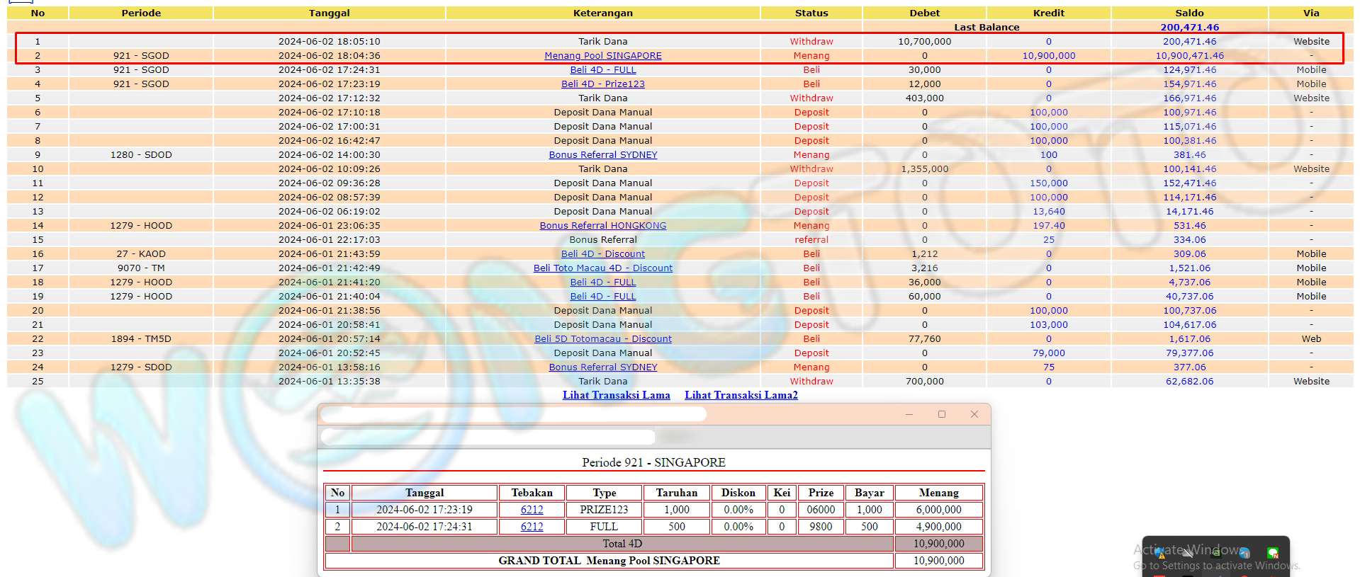 WIN & WITHDRAWAL MEMBER WONGTOTO