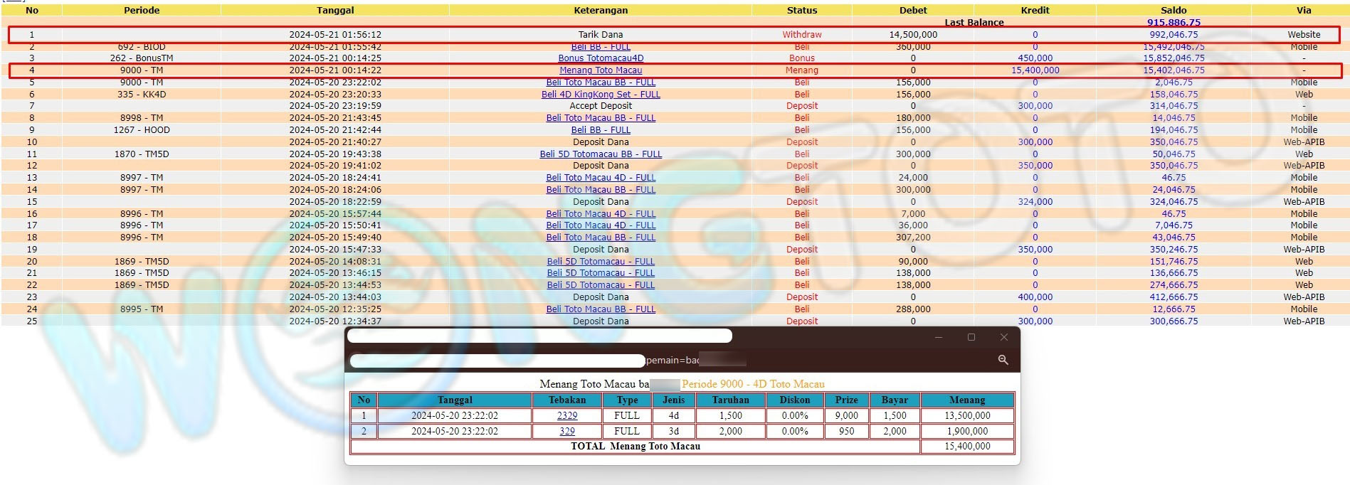 WIN & WITHDRAWAL MEMBER WONGTOTO