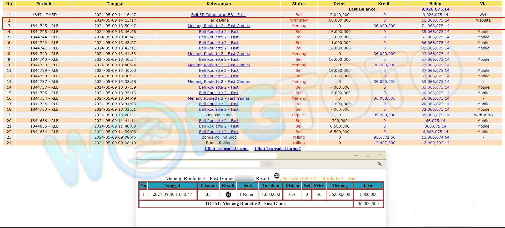 WIN & WITHDRAWAL MEMBER WONGTOTO
