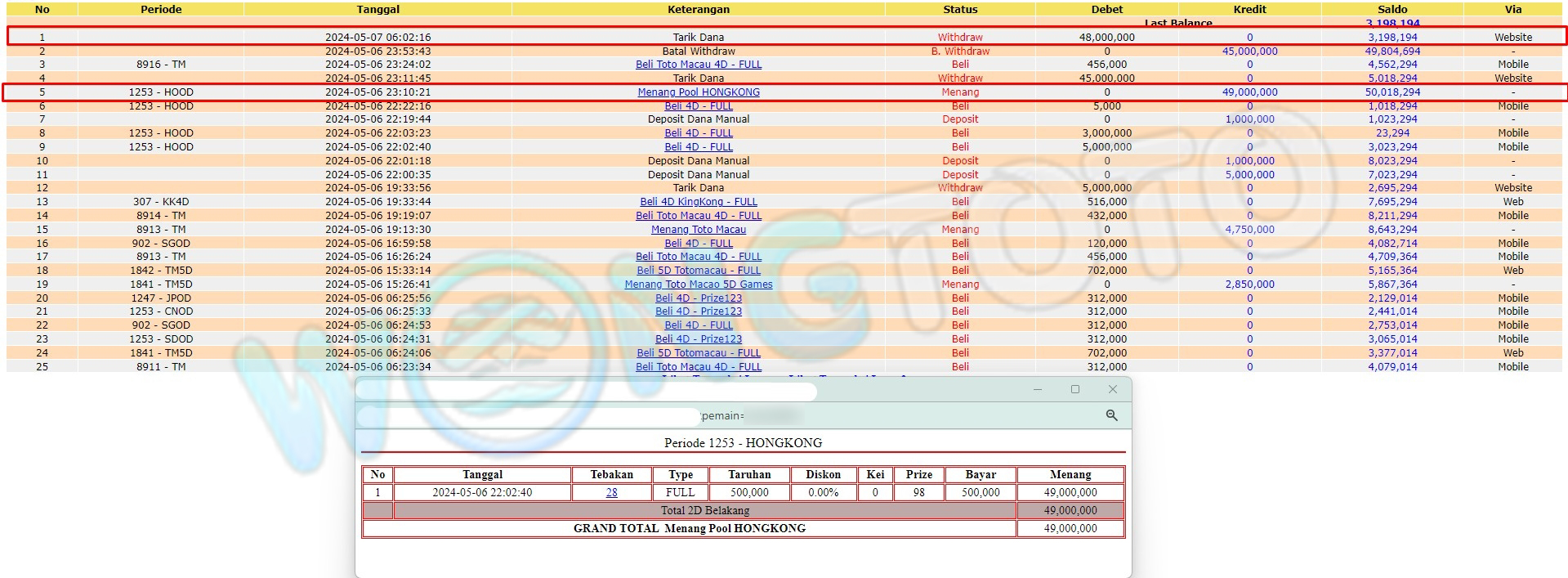 WIN & WITHDRAWAL MEMBER WONGTOTO