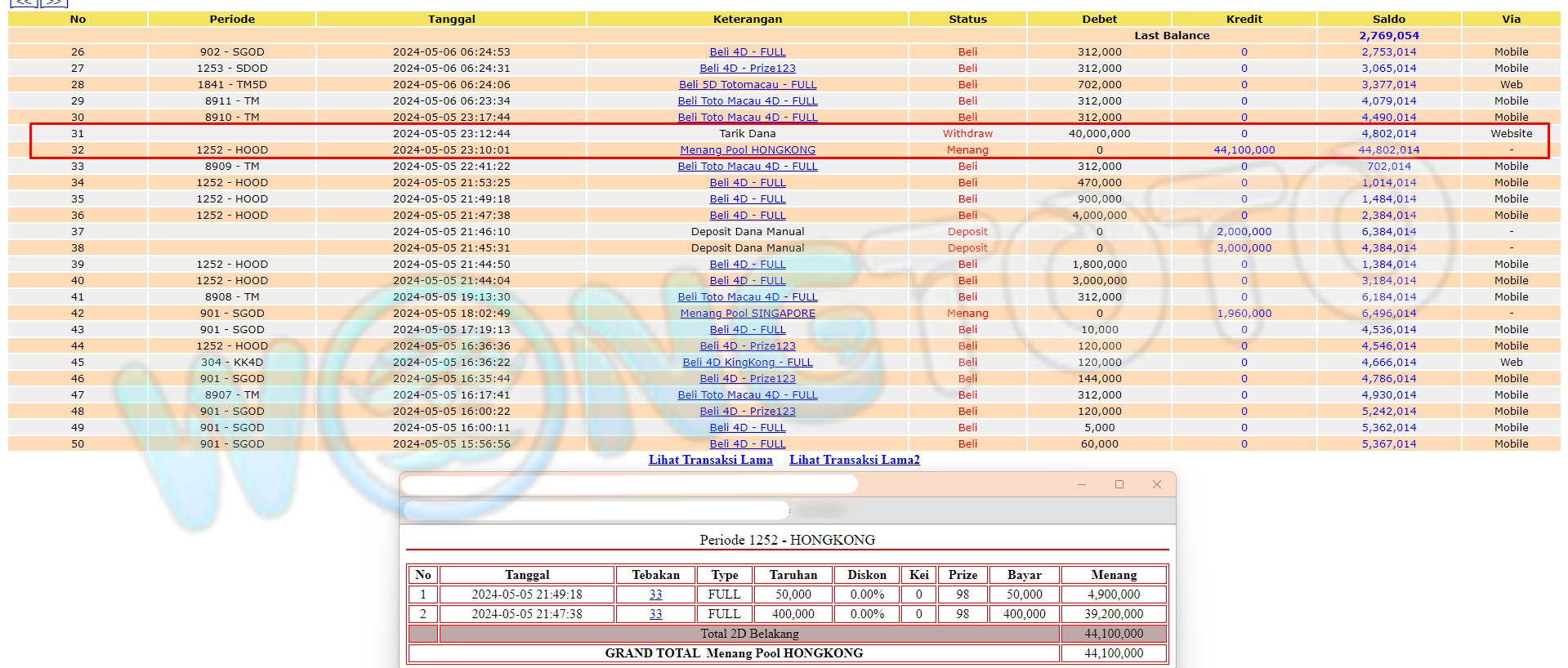 WIN & WITHDRAWAL MEMBER WONGTOTO