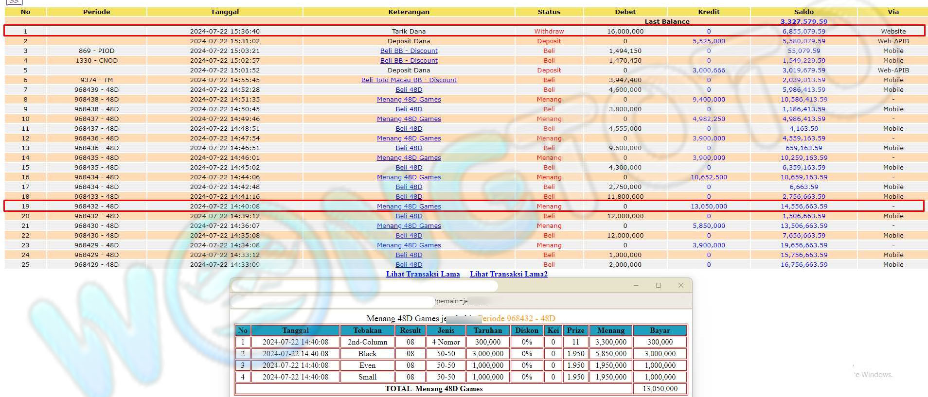 WIN & WITHDRAWAL MEMBER WONGTOTO