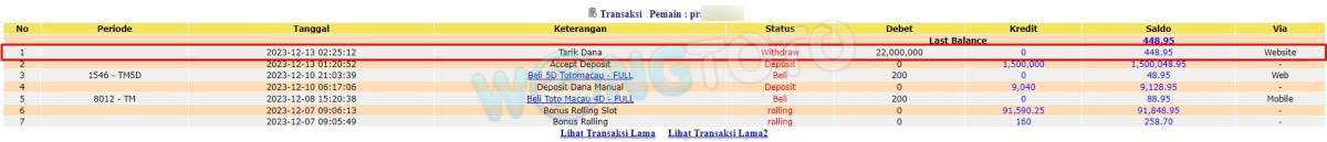 WIN & WITHDRAWAL MEMBER WONGTOTO