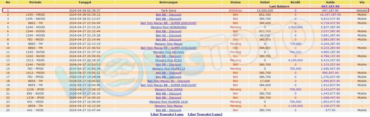 WIN & WITHDRAWAL MEMBER WONGTOTO
