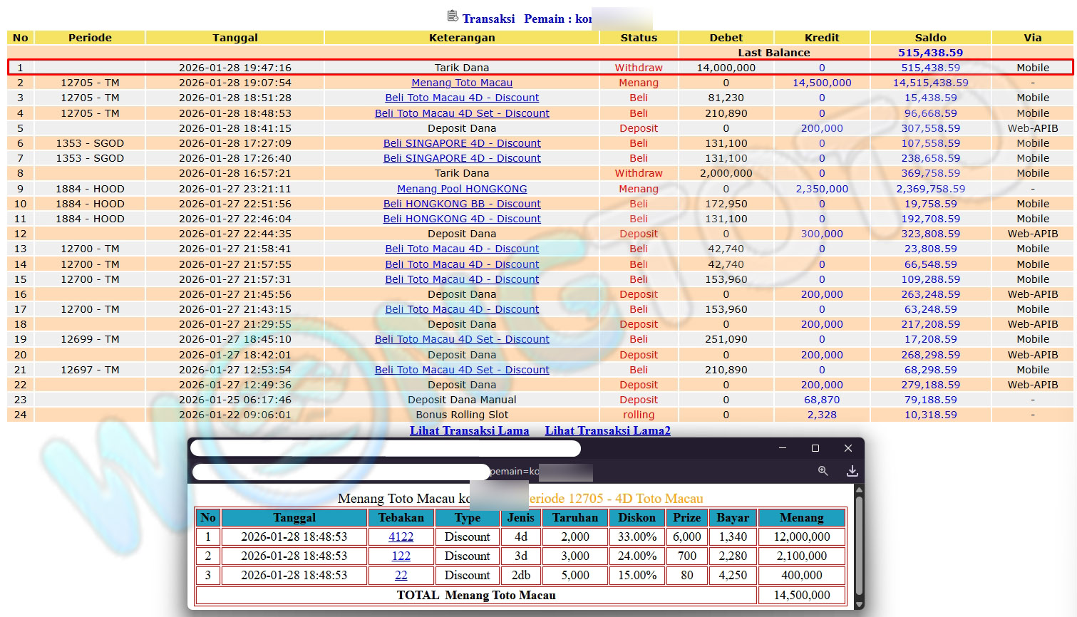 WIN & WITHDRAWAL MEMBER WONGTOTO