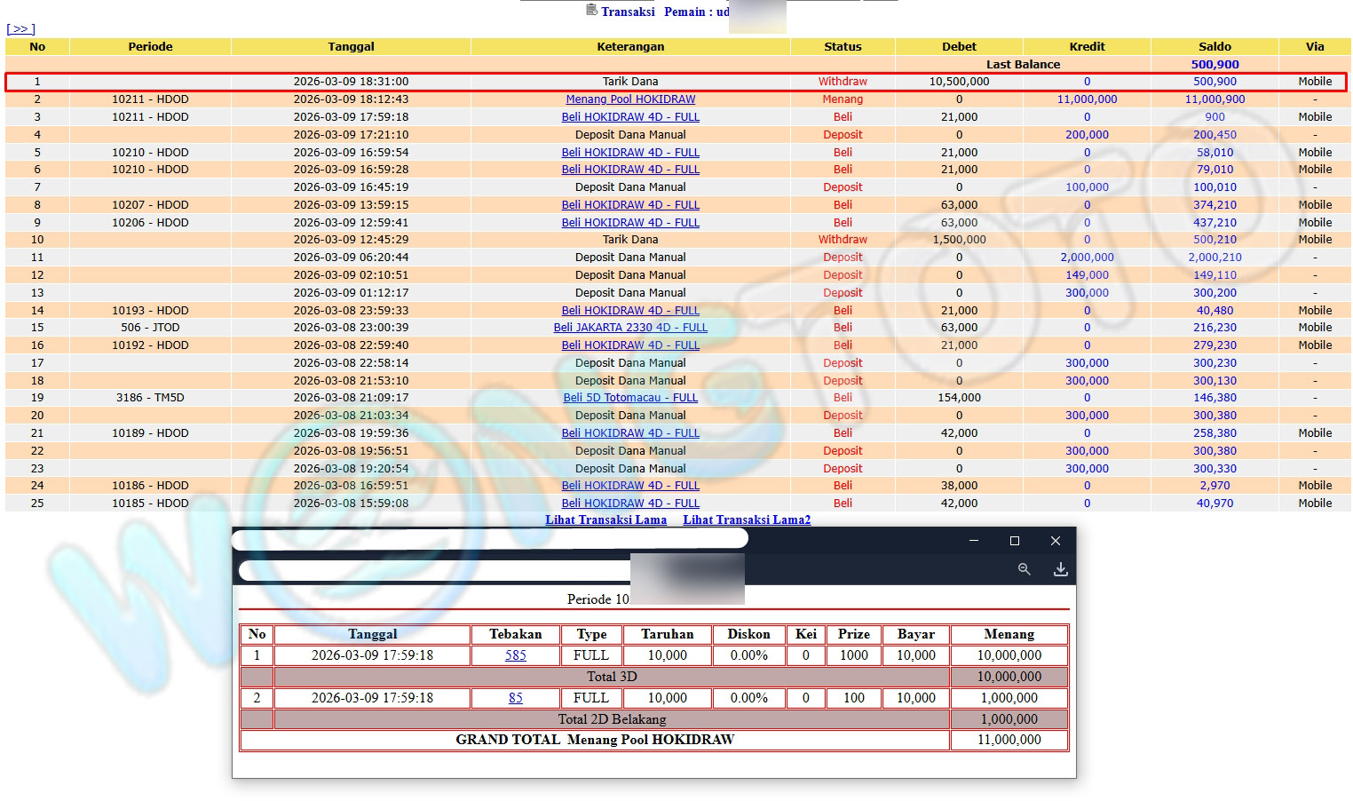 WIN & WITHDRAWAL MEMBER WONGTOTO
