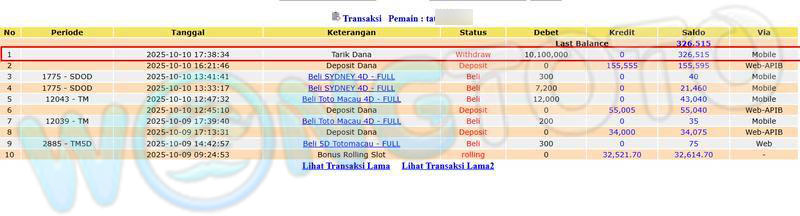 WIN & WITHDRAWAL MEMBER WONGTOTO